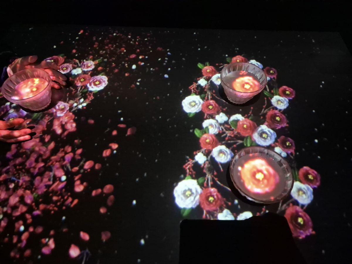 전시의 끝에서는 TEA BAR가 우리를 기다리고 있었습니다. 찻잔을 놓으면 동백꽃이 피는 모습은 정말 황홀했습니다.