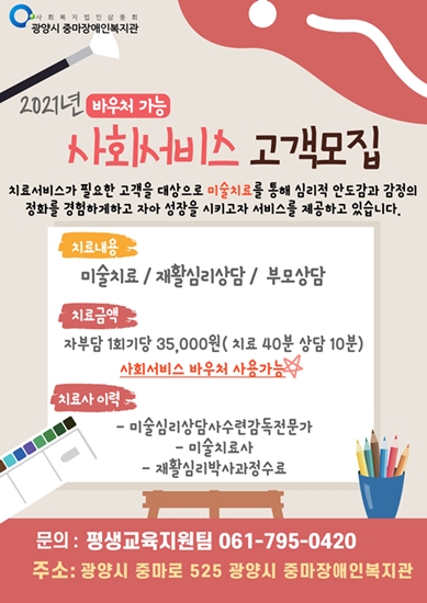 2021년 사회서비스고객(미술치료)을 모집합니다.